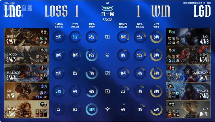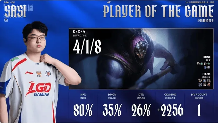 LGD选用:sasi武器,Heng蔚,Tangyuan阿狸,Shaoye厄斐琉斯,Ycx芮尔